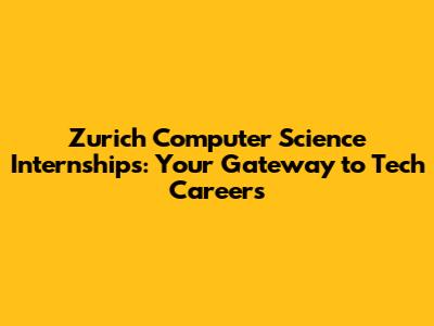 Zurich Computer Science Internships: Your Gateway To Tech Careers
